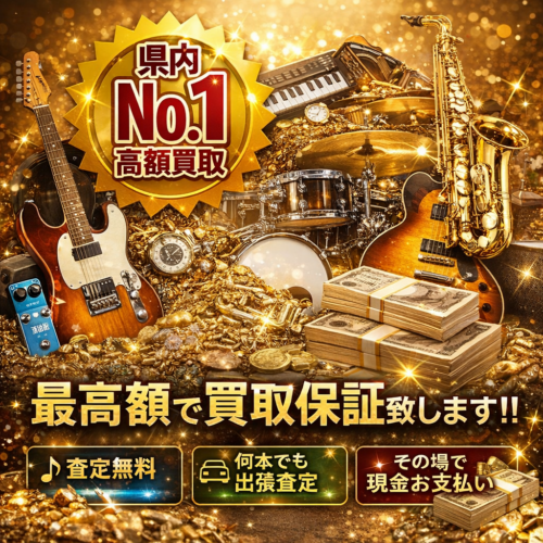 楽器買取高松最高額.comでは、他店様の査定金額より+1,000円以上上乗せ致します!業界初の買取保証制度です。